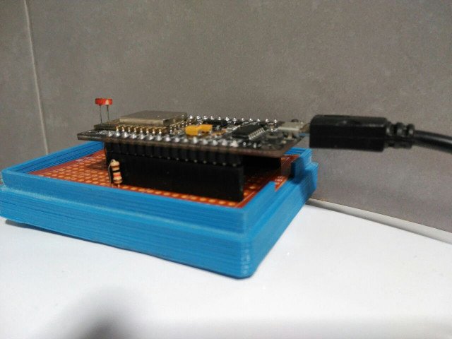 Then we needed a case to protect the board and place it in a good place of the bathroom. So we downloaded a PCB case printable 3D model in thingverse and modified to fit the dimensions of the PCB and the NodeMCU. We printed the case thanks our friend Marcos.